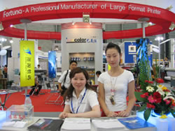 我公司展位位于2號館內(nèi), 總展出面積200多平米,主要展出了戶外高精度噴繪機——水星噴繪機、YSL雷鳥/颶風設備,戶內(nèi)寫真機——MIMAKI系列,雕刻機系列——雕霸雕刻機、利得寶激光雕刻機,還展出了藝美佳耗材——imacolor藝美佳墨水、imacolor藝美佳相紙系列。